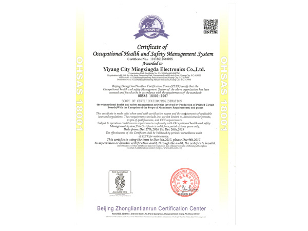 職業(yè)健康安全管理體系認(rèn)證證書(英文)