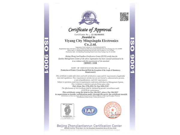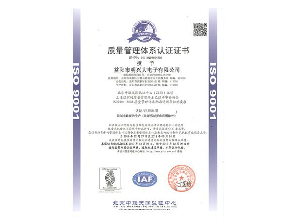 質(zhì)量管理體系認(rèn)證證書ISO9001(英文)
